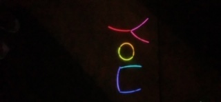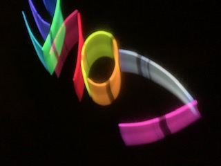 昨日、夜に光る棒を渡したら、こんな遊び方があるとは思いませんでした。すごくきれいですね。